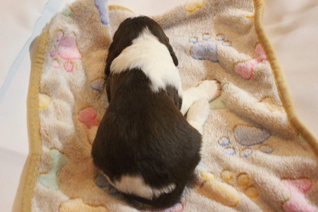 Ashby is a liver and white male